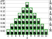 주사위 두 개를 던졌을 때 두 눈의 합에 대한 확률분포 연속 확률 분포의 예