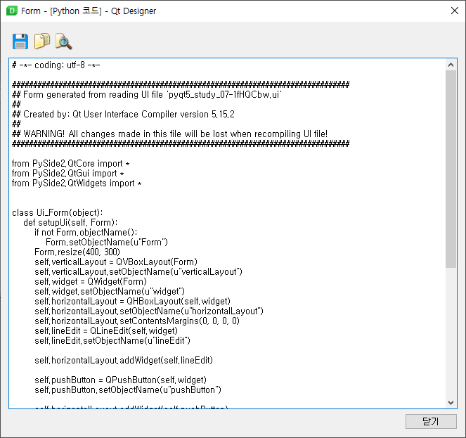 .ui 파일을 파이썬 코드(.py)로 변환하기