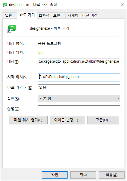 Qt Designer 의 설치 경로