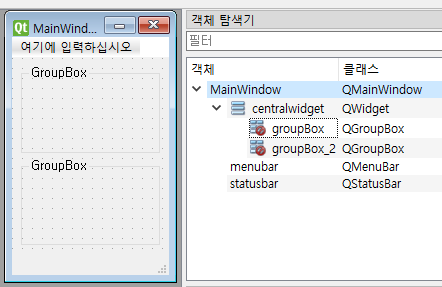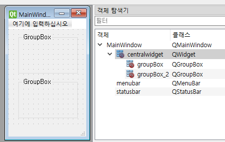 여기서는 centralwidget을 클릭했습니다.