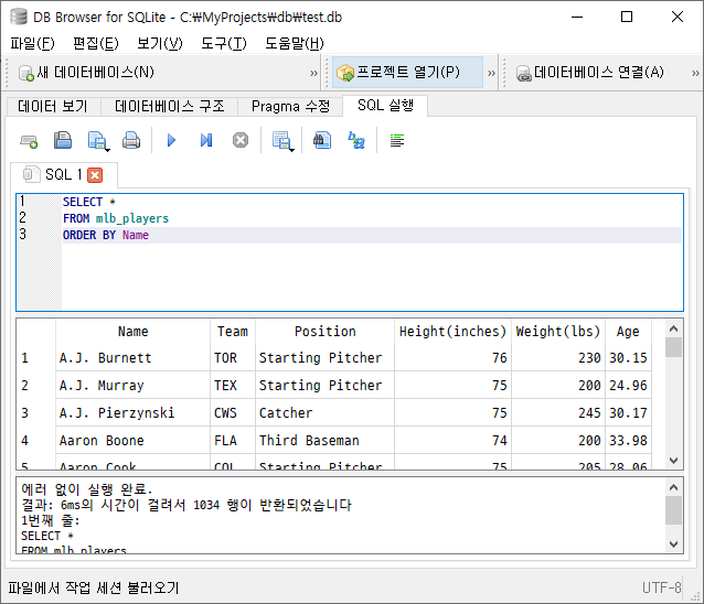 기본값이 ASC이므로 굳이 명시하지 않는다.SELECT * FROM mlb_players ORDER BY Team, "Height(Inches)"