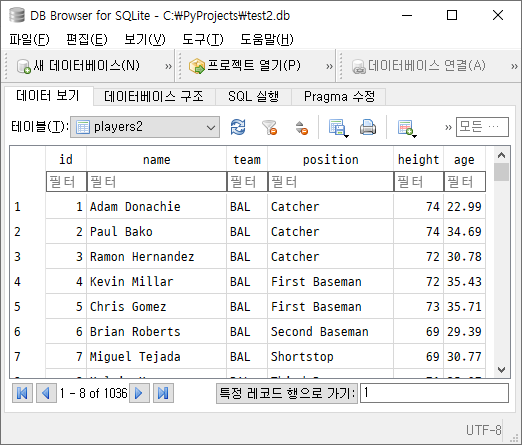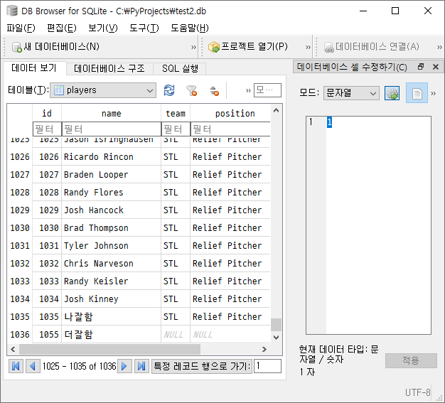 INSERT INTO players VALUES (1035, '나잘함', 'STL', 'Relief Pitcher', 80, 30)부분만 입력할 때는 컬럼명이 필요하다.