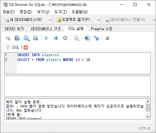 INSERT INTO players2 SELECT * FROM players WHERE id > 10VALUE를 쓸 필요가 없다.